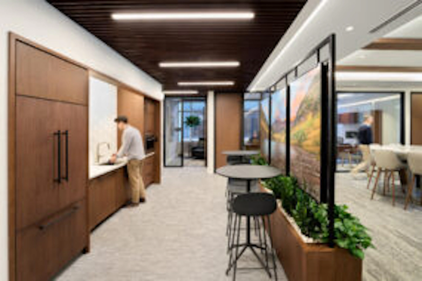 This Cherry Creek North office celebrates a century-long legacy while embracing the future. The design seamlessly blends Western heritage with modern sophistication, featuring rich wood tones, leather accents, and natural stone. Expansive views, abundant daylight, and hospitality-driven amenities—including a gathering lounge, fireplace seating, and flexible collaboration spaces—create an environment that fosters productivity and connection. Curated art and a gallery wall showcasing the company's history add depth and authenticity, making this workplace a true reflection of its vision, integrity, and community impact.