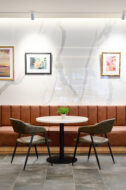Larimer 17 is the repositioning of an existing office lobby and retail space to create a vibrant and active interior amenity for the building and its surrounding neighborhood. A vacant corner ground-floor retail space was reimagined as a coffee operator and flexible office collaboration space, featuring clearer wayfinding and supporting amenity spaces. The result is a lively ground floor experience with modern finishes, unique tile/wood applications, natural lighting, and a sustainable interior environment