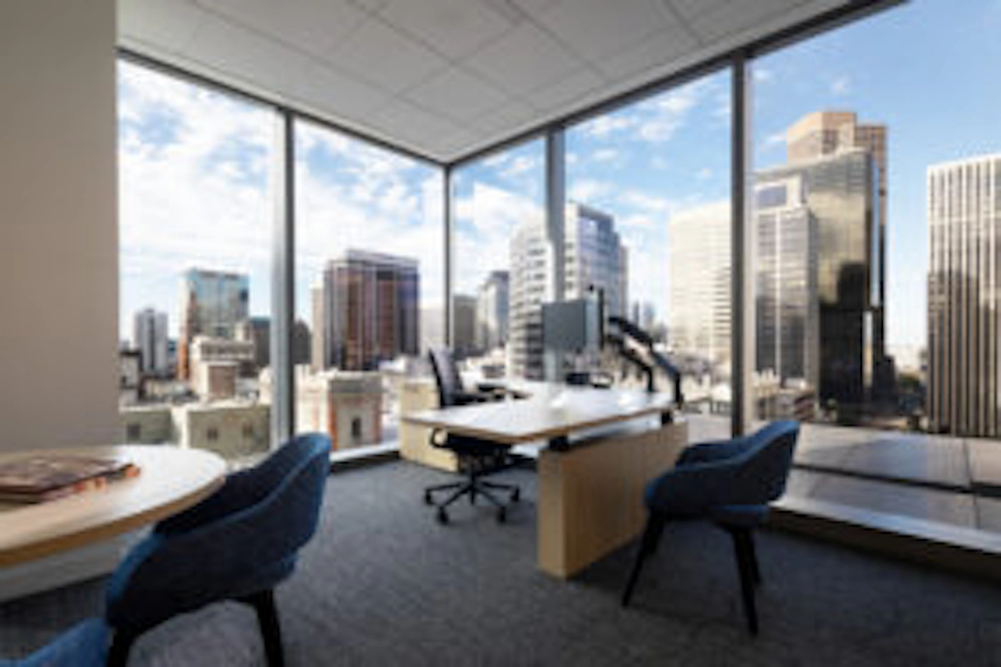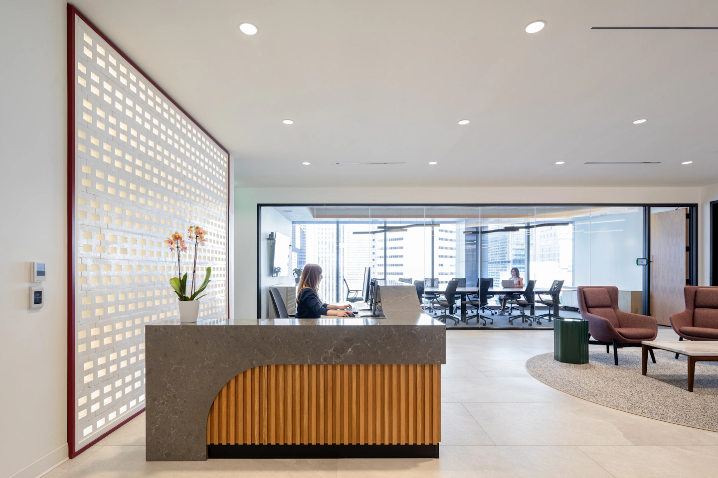 This office space, located in the heart of downtown Denver, was designed to foster equality, sustainability, and connection. The layout strikes a balance between open areas and personal spaces, ensuring access to natural light and sweeping urban views for all users. Key features include a hospitality-inspired reception and lounge, a collaborative break room, and a formal boardroom for meetings and presentations. Sustainable materials and energy-efficient systems are integrated throughout, creating a welcoming, functional environment that reflects forward-thinking design principles.